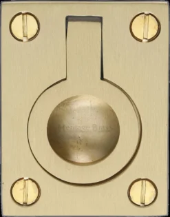 Flush Fitting Rectangular Ring Pull – Available In Two Sizes – Satin Brass (Lacquered)