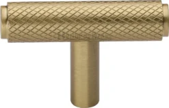 Knurled T-Bar Cabinet Knob – 45mm X 11mm – Satin Brass (Lacquered)