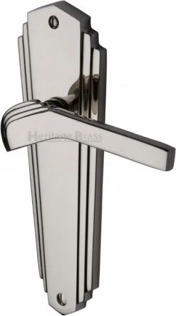 Tubular Pattern Lever Handle With Stepped Ends On A Large Rectangular Backplate – Polished Nickel