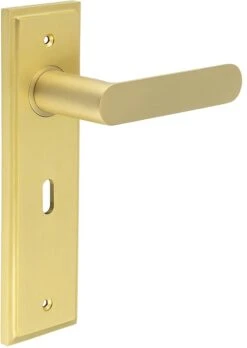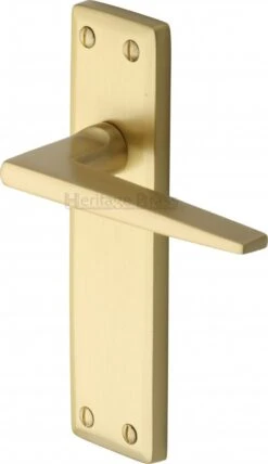 Tappered Pattern Lever Handle On A Large Rectangular Backplate – Satin Brass (Lacquered)