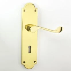 Knurled Pattern Lever Handle On A Large Rectangular Backplate – Satin Brass (Lacquered)