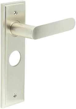 Flat Front Pattern Lever Handle With Rounded End On A Large Rectangular Backplate – Satin Nickel