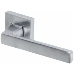 Cube Square Rose Lever Handles – Satin Chrome – Suitable For Use With FD30 / FD60 Fire Doors