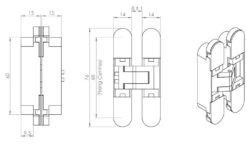 Concealed Adjustable Hinge For Invisible Doors – Suitable For 18mm Doors – 76mm X 14mm – Matt Black