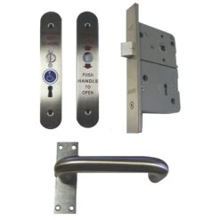 Accessible Toilet Lock & Handle Set For Disabled WC Toilets – Satin Stainless Steel