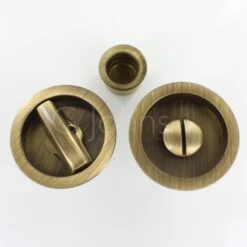 Bathroom Hook Lock For Sliding Pocket Doors – With Turn And Release – Antique Brass (Lacquered)