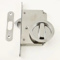 Bathroom Hook Lock For Sliding Pocket Doors – With Turn And Release – Polished Stainless Steel