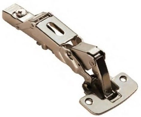 - This hinge comes supplied with an adjustable clip on mounting plate, which allows the door to be fully adjusted and then quickly removed by simply pushing a small button at the very tip of the hinge.