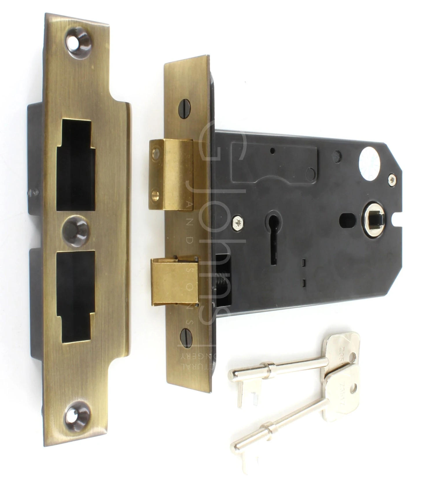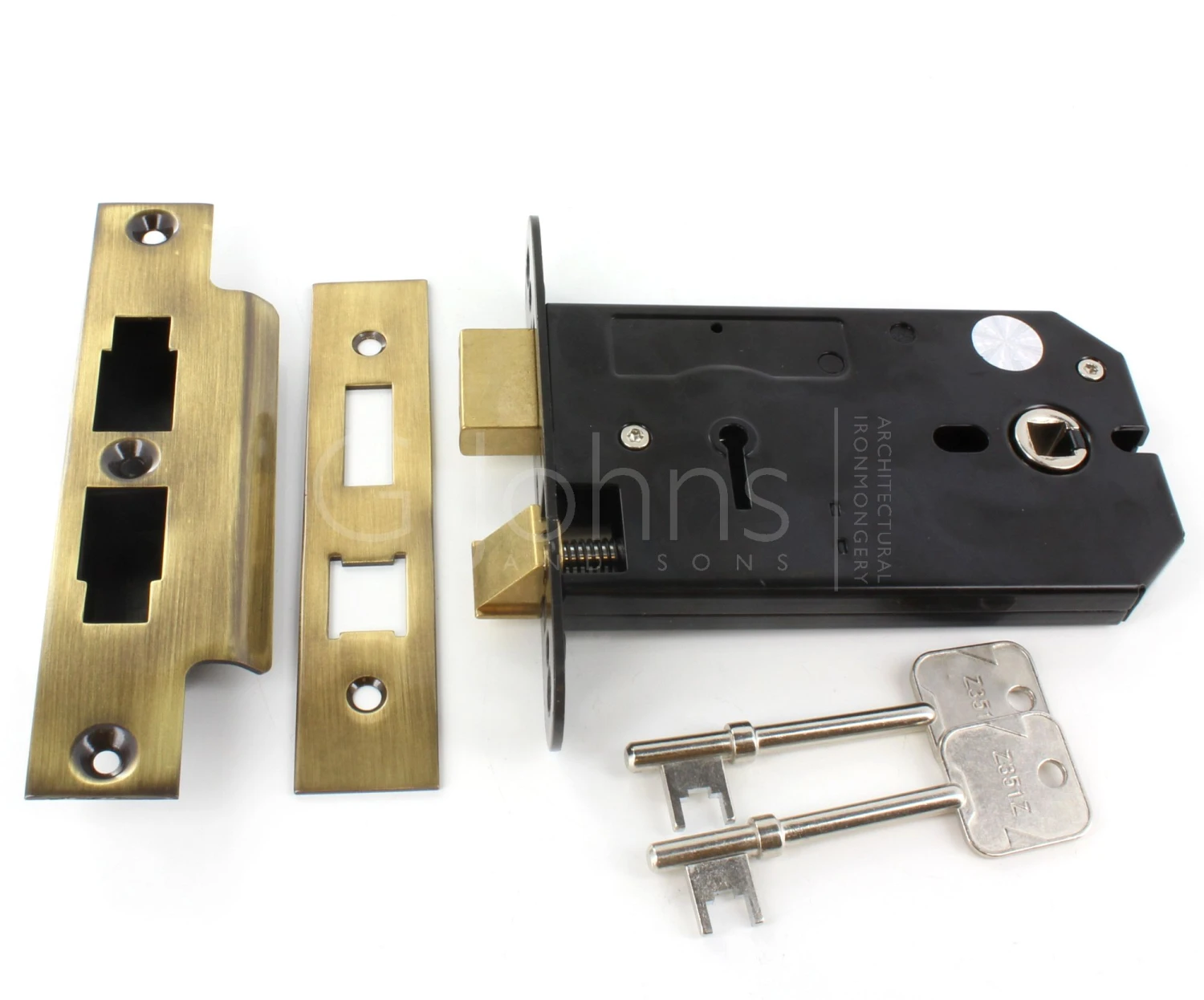 - Each – (1 x lock case supplied with forend, strike plate and 2 keys).