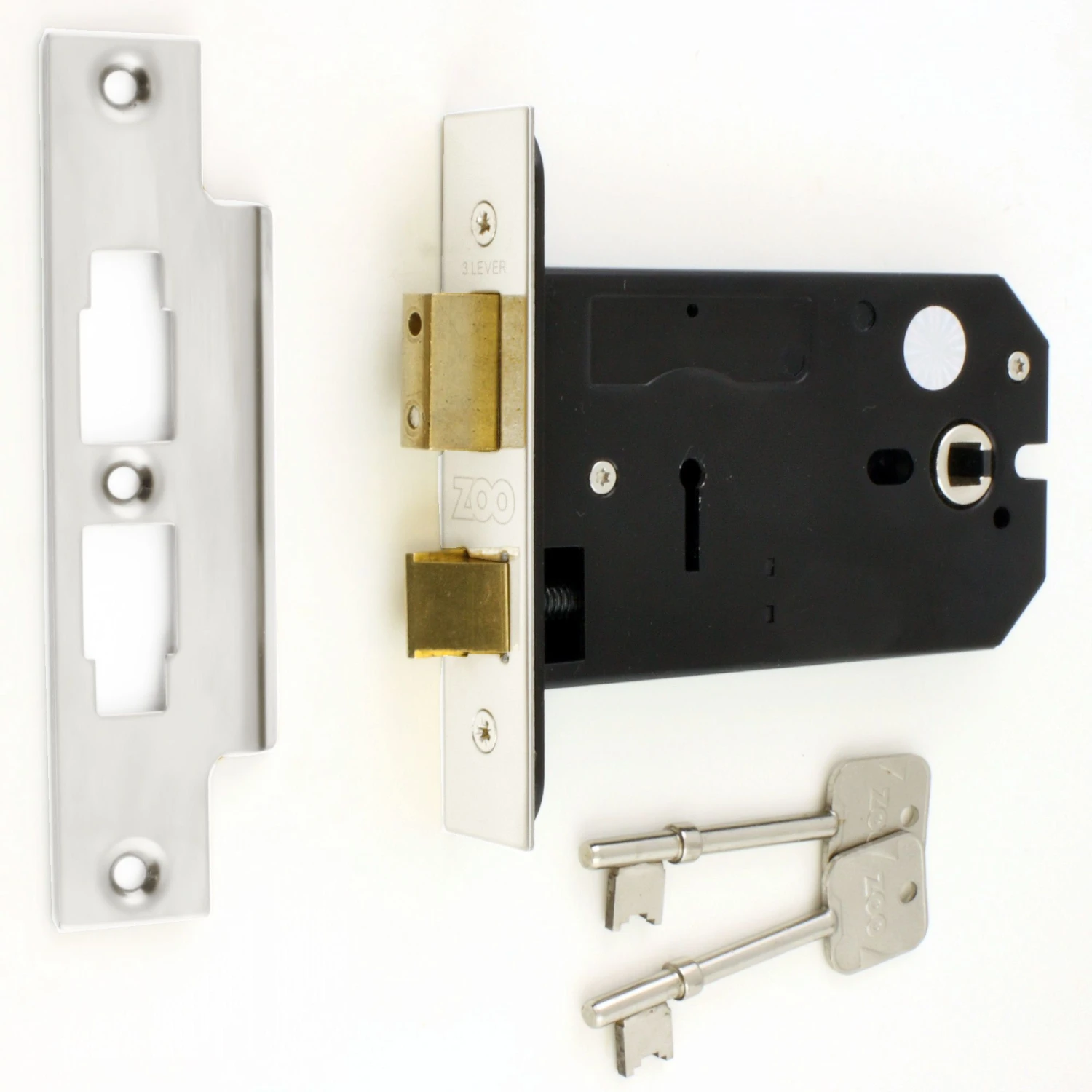 - Each – (1 x lock case supplied with forend, strike plate and 2 keys).