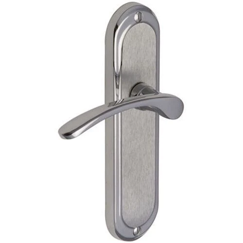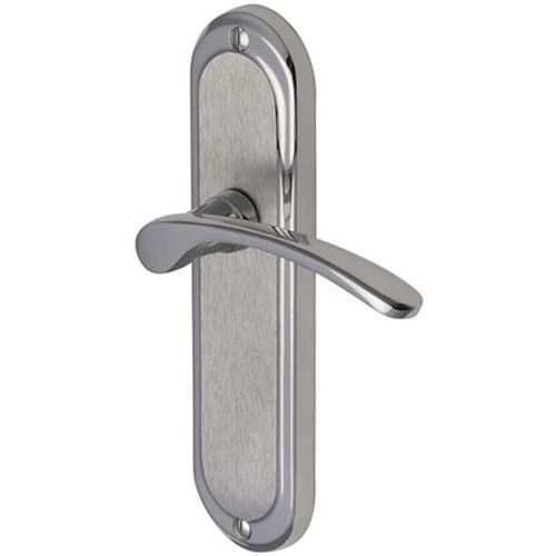 - Dual finish – satin (brushed) chrome backplate with polished (shiny) chrome edges and lever.