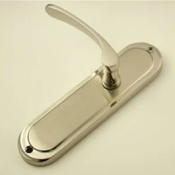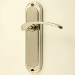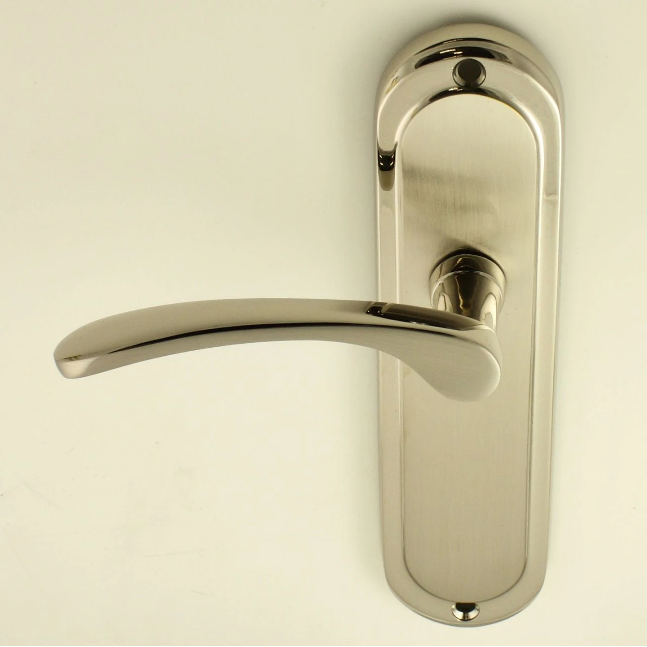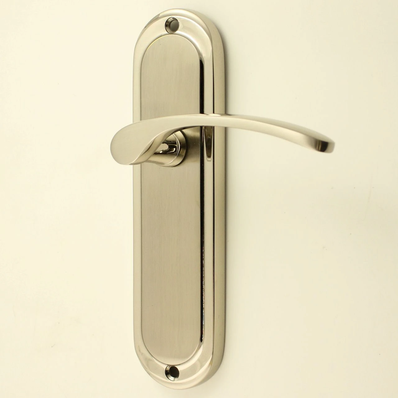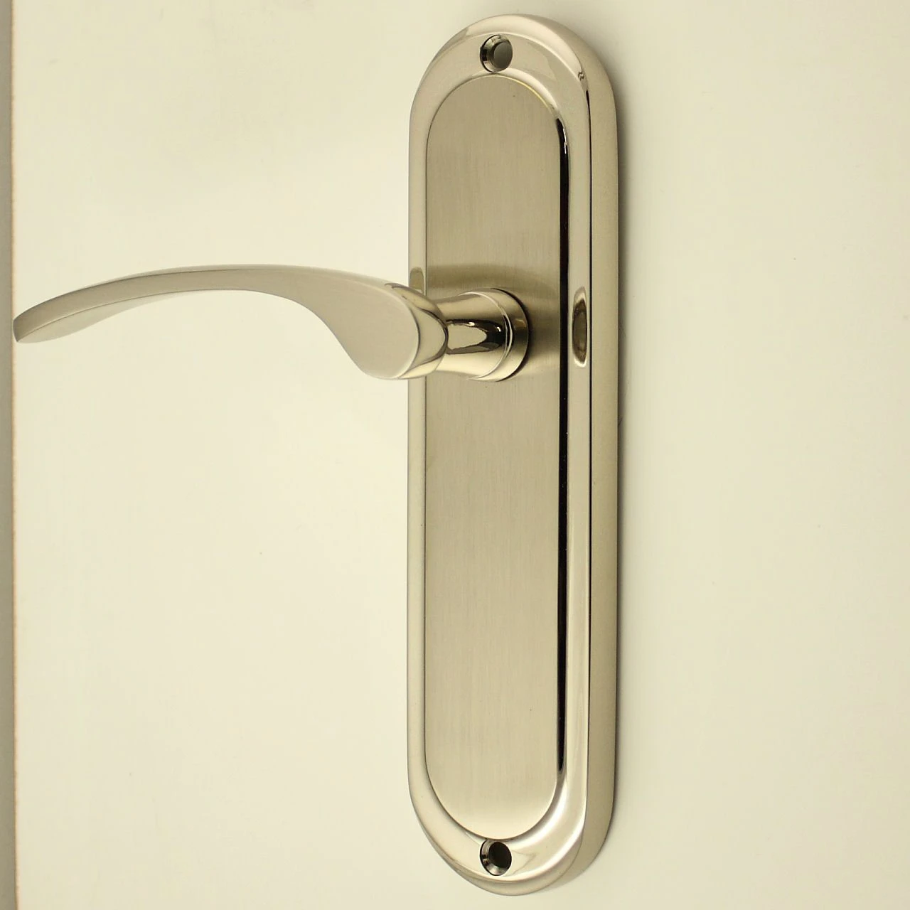 - Dual finish – satin (brushed) nicke backplate with polished (shiny) nickel edges and lever.