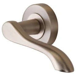 - Aurora Lever Handle – on Round Rose – Satin Nickel – M Marcus