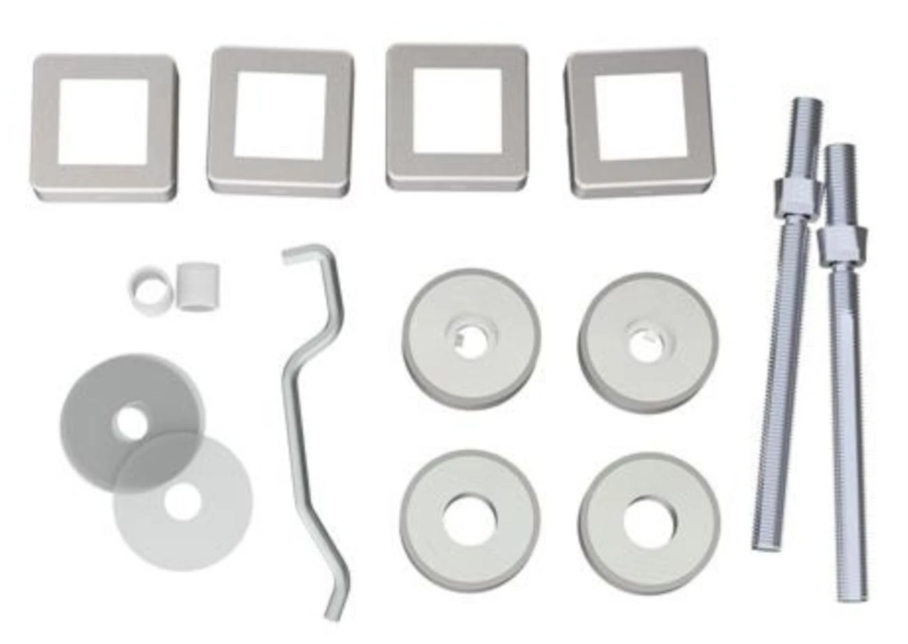 - Satin stainless steel back to back fixing kit for square shape pull handles.