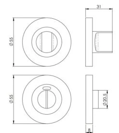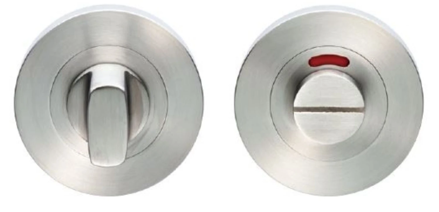 2 – a release which is fitted on the outside of the bathroom. If some gets locked in the bathroom or toilet the snib can be released in an emergency by twisting a coin or screwdriver in the slotted part of the rose a quarter turn