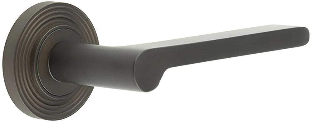 - Dark Bronze Blade pattern lever handles with Reeded pattern concealed fix rose.