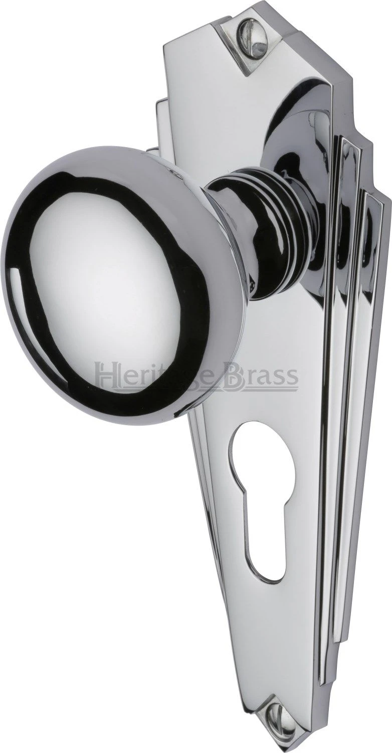 - Broadway Art Deco Mortice Knob on a minimal rectangular back plate