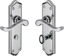 ![Example of a bathroom turn and release lever set]()