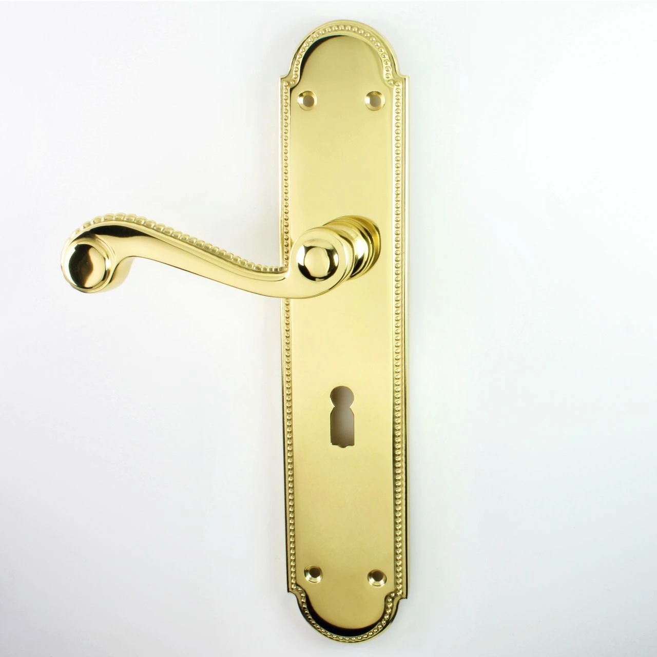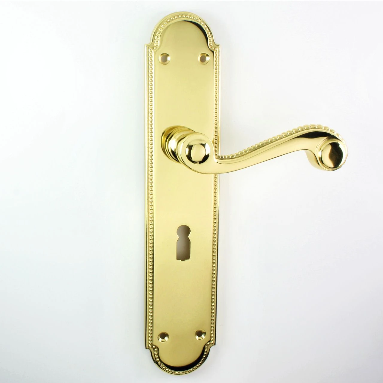 - The Chesham long plate door handle suite from Carlisle Brass is a traditional style handle with a Regency beaded pattern decorating the edges of the backplate and the top of the lever.