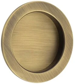 - Antique brass finish flush fittingย circular handles for sliding pocket doors