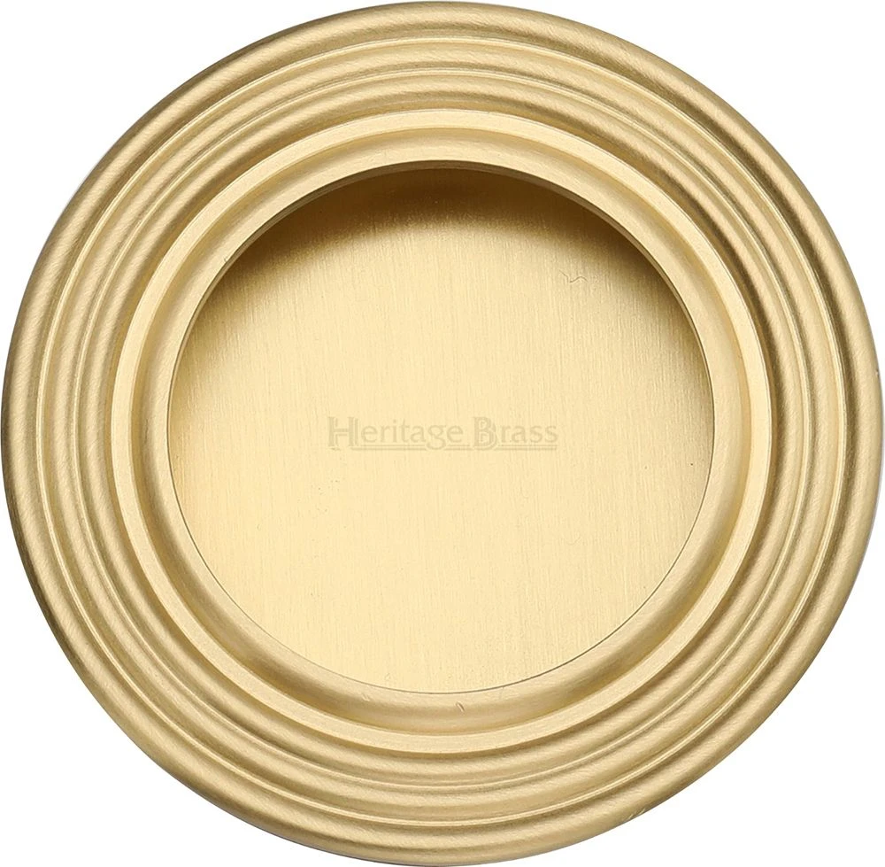 - Circular reeded flush pull handle for sliding pocket doors