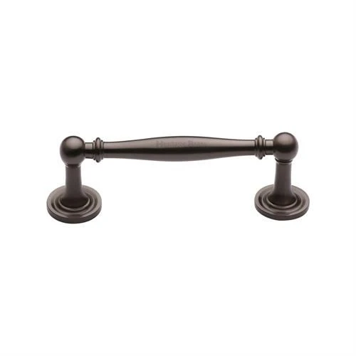 - Classic design cabinet pull handle, slim bar style with ringed pattern roses.