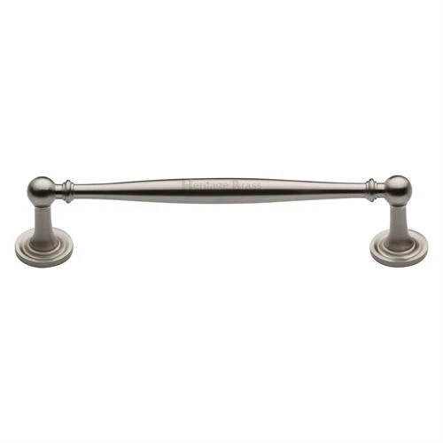- Classic design cabinet pull handle, slim bar style with ringed pattern roses.