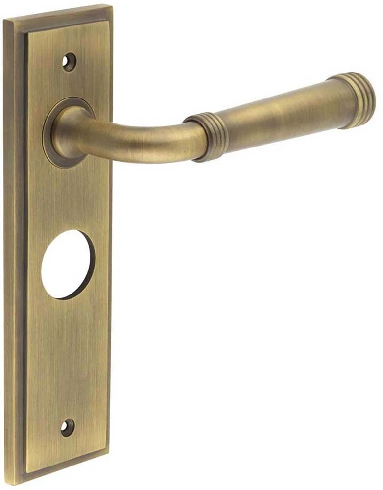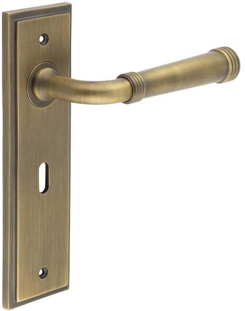 - Classic Pattern Lever Handle With Ring Detail On A Large Rectangular Backplate