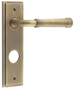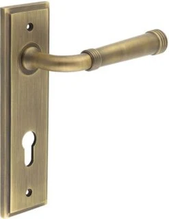 - Available in various plate designs including latch set for non locking doors, lock set for key locking doors, bathroom set that locks via a thumbturn and can be released in an emergency via a coin release on the outside handle, and a euro profile set for use with euro profile cylinders.