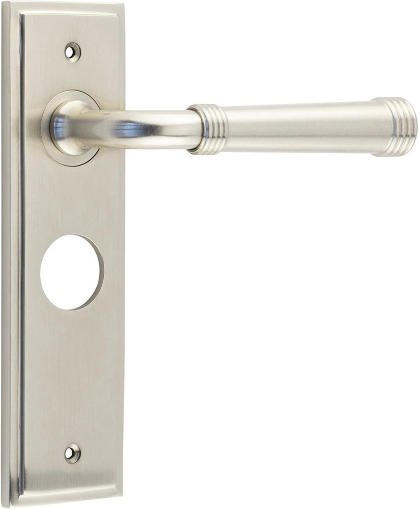 - Available in various plate designs including latch set for non locking doors, lock set for key locking doors, bathroom set that locks via a thumbturn and can be released in an emergency via a coin release on the outside handle, and a euro profile set for use with euro profile cylinders.