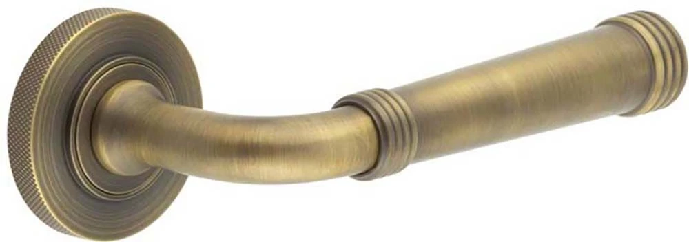 - Antique brass Classic pattern lever Handles With Ring Detail With knurled pattern concealed fix rose.