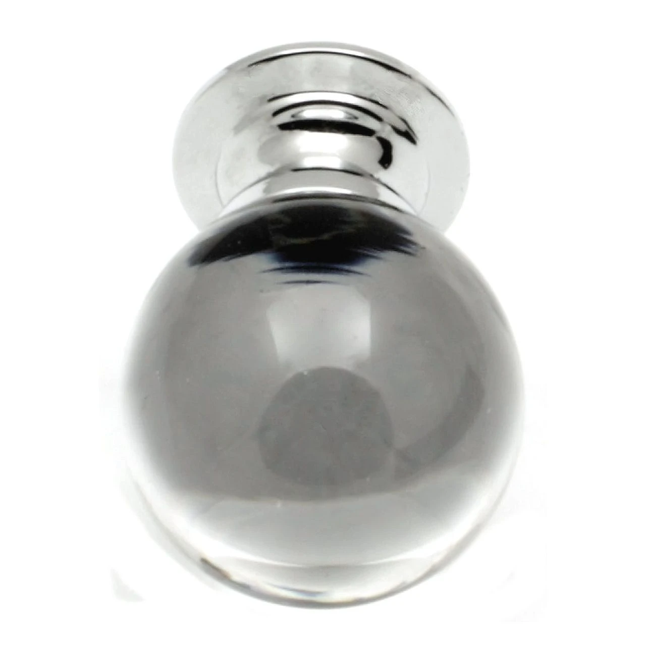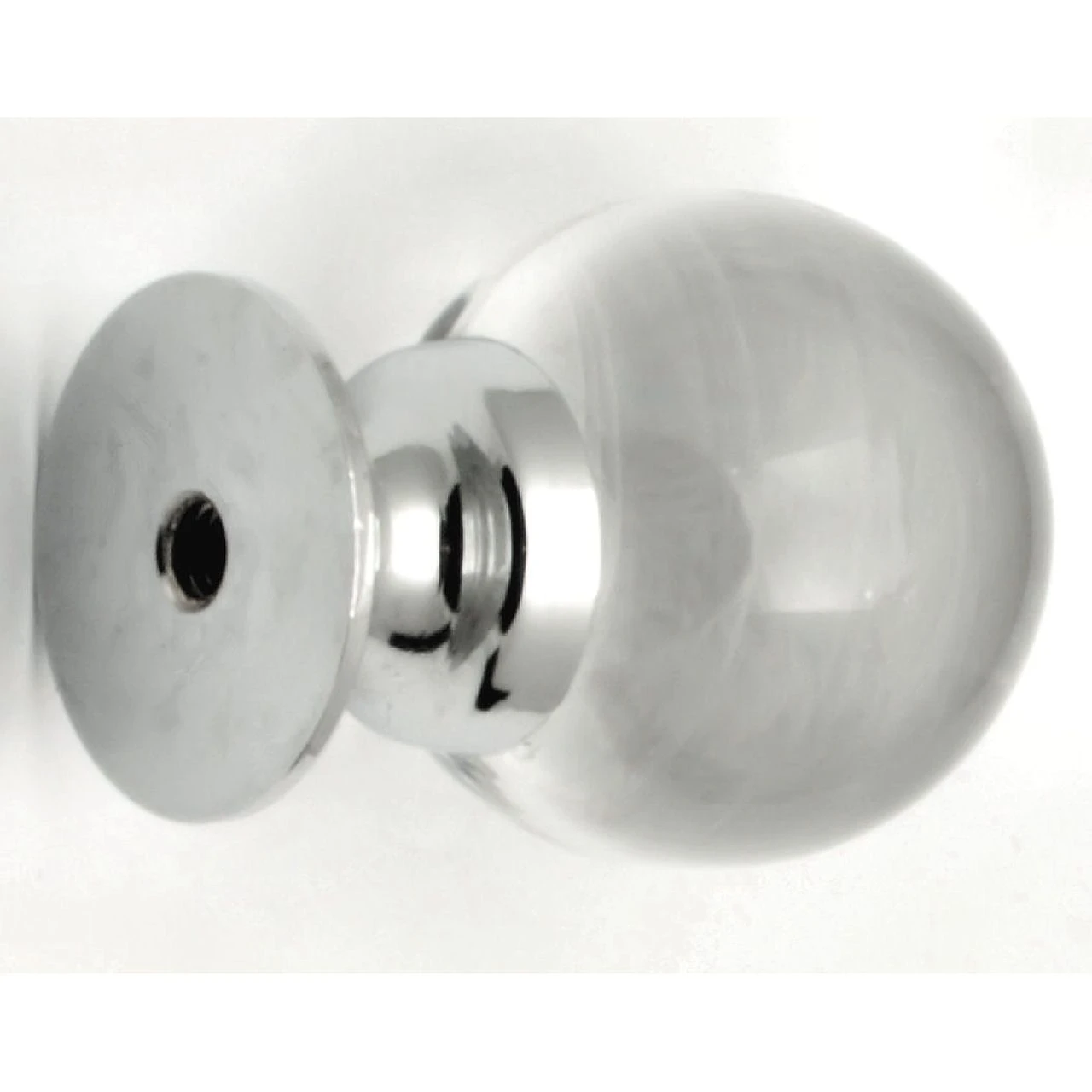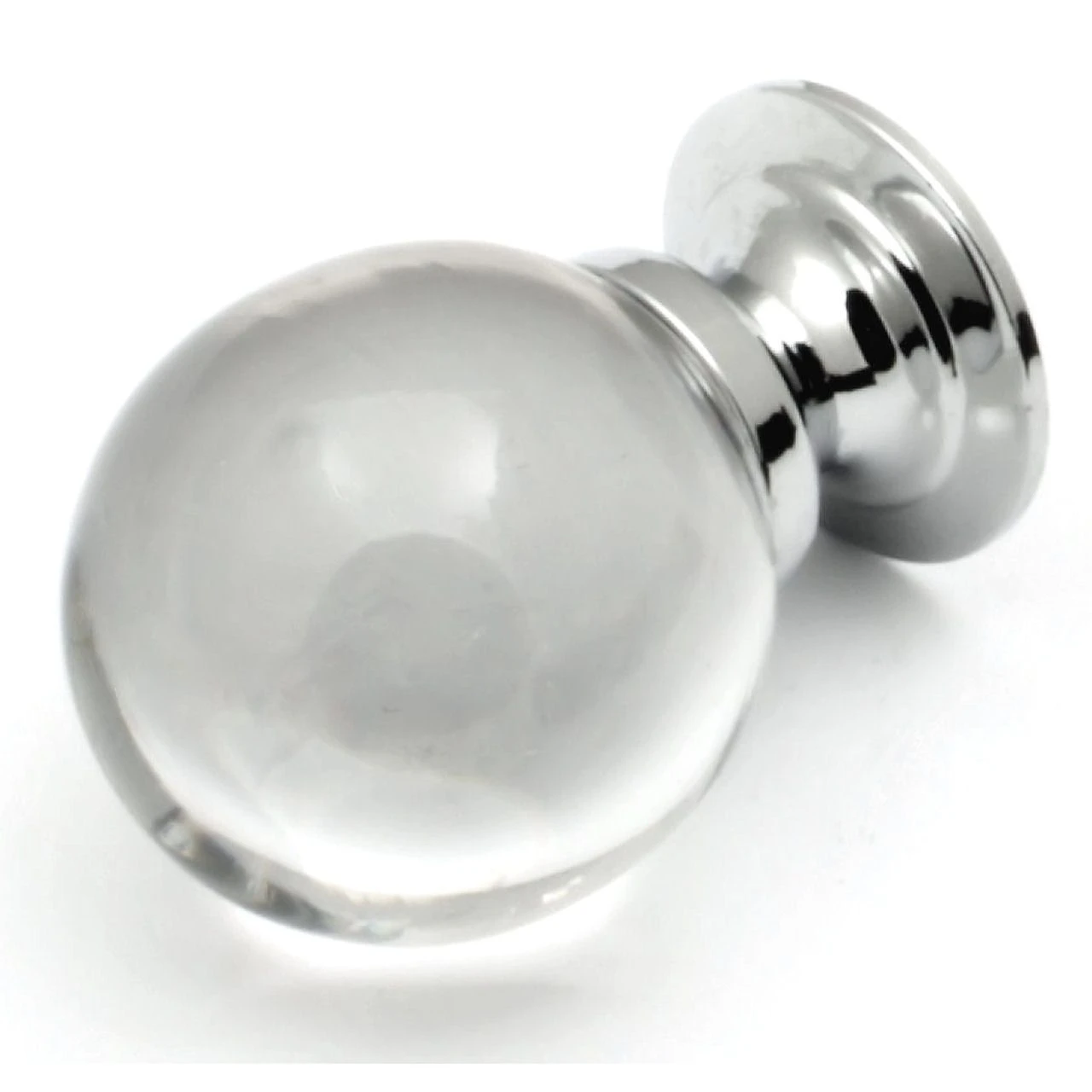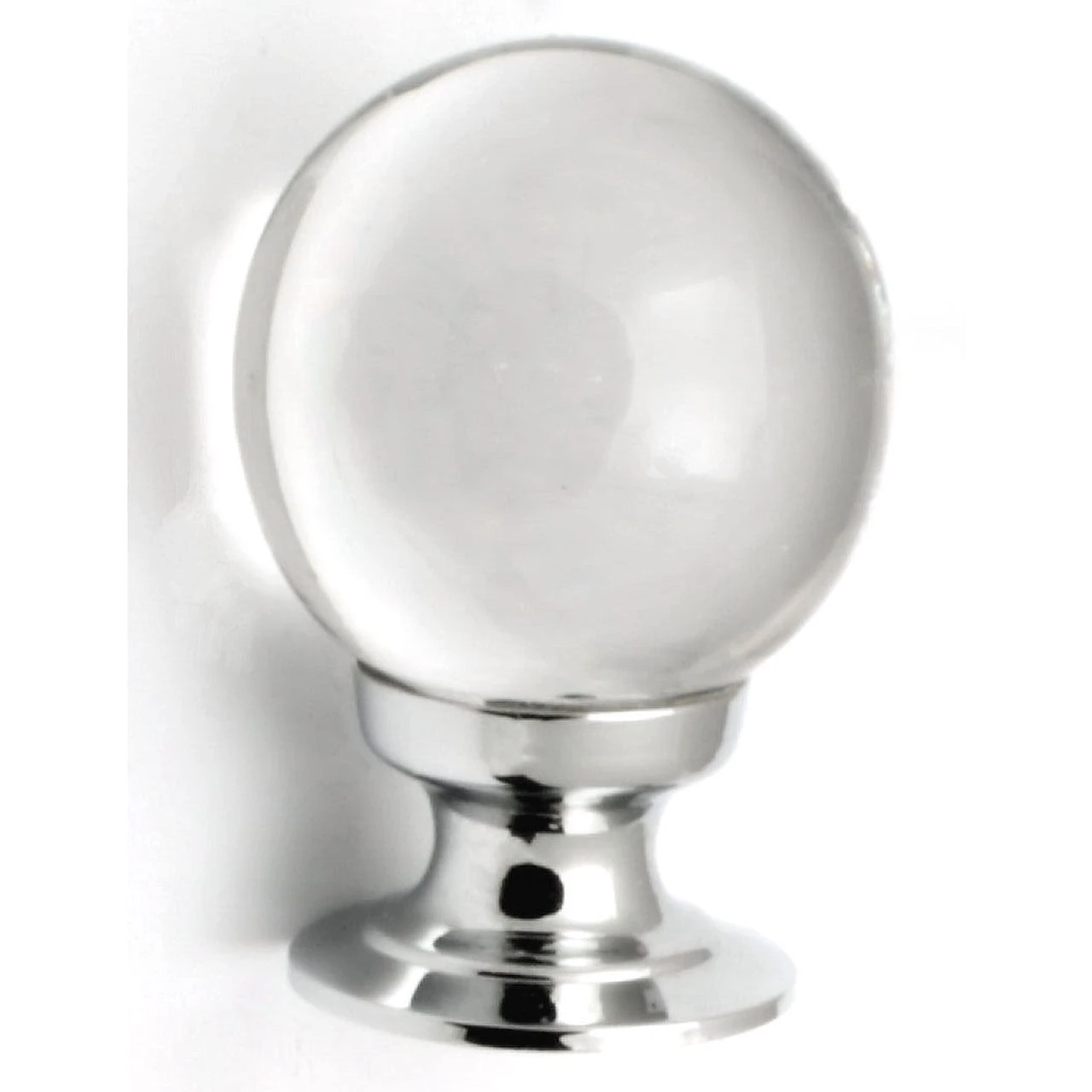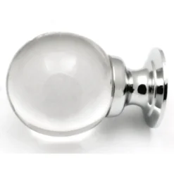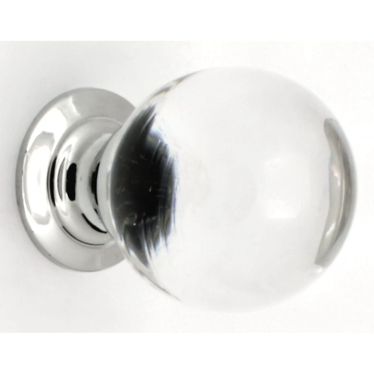 - Ball shape cupboard door knobs made from a clear / transparent glass with a shiny polished chrome plated back plate.