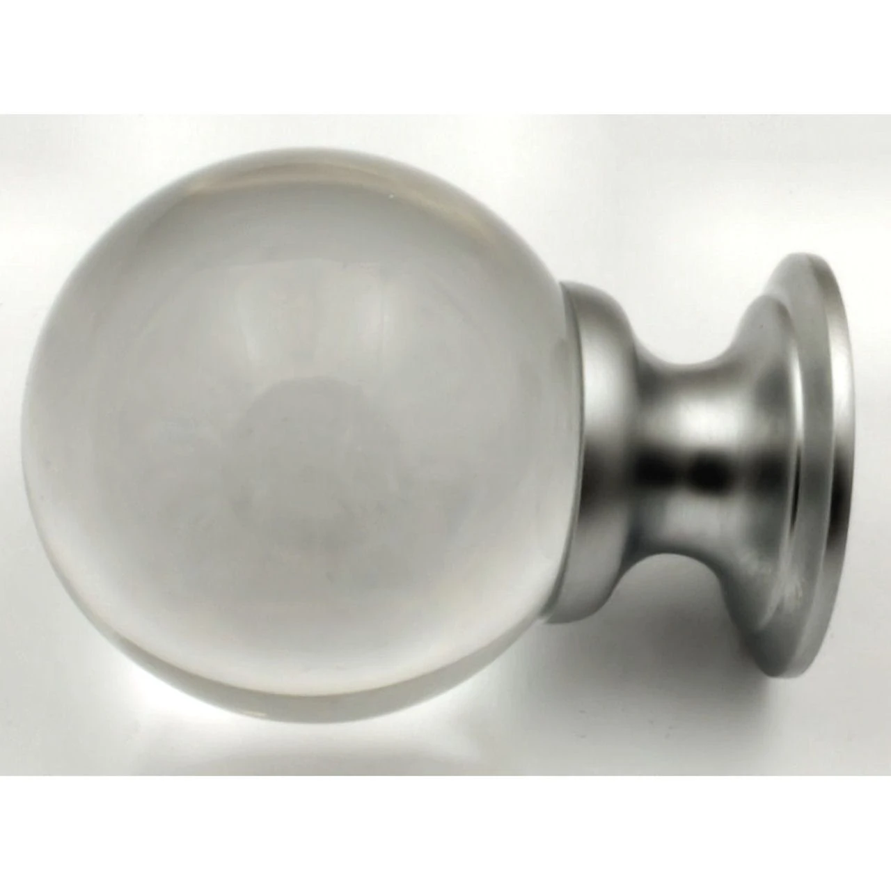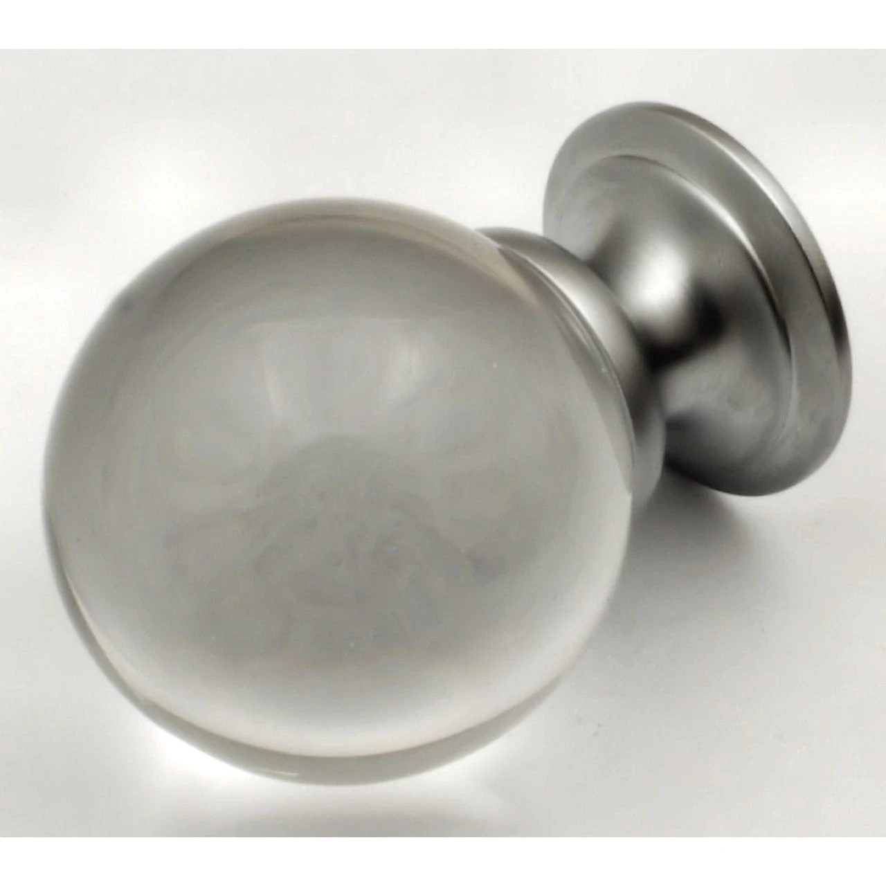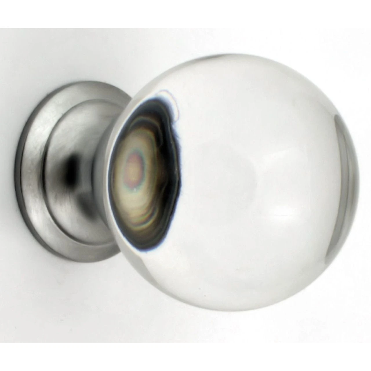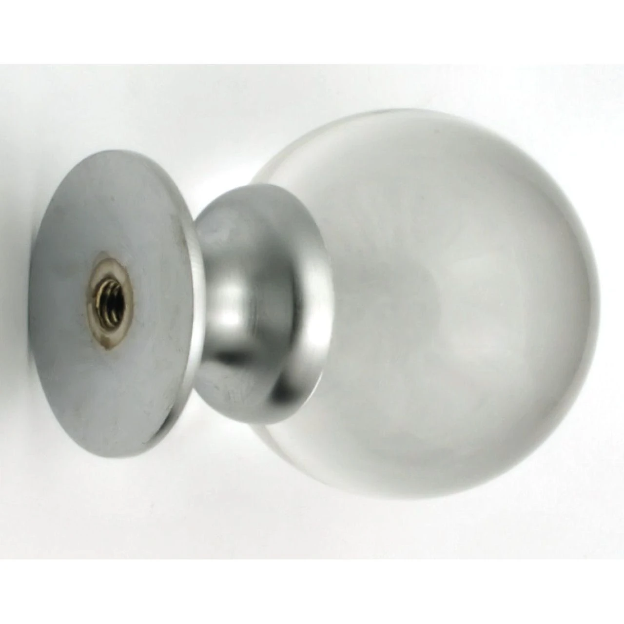 - Ball shape cupboard door knobs made from a clear / transparent glass with a brushed satin chrome plated back plate.