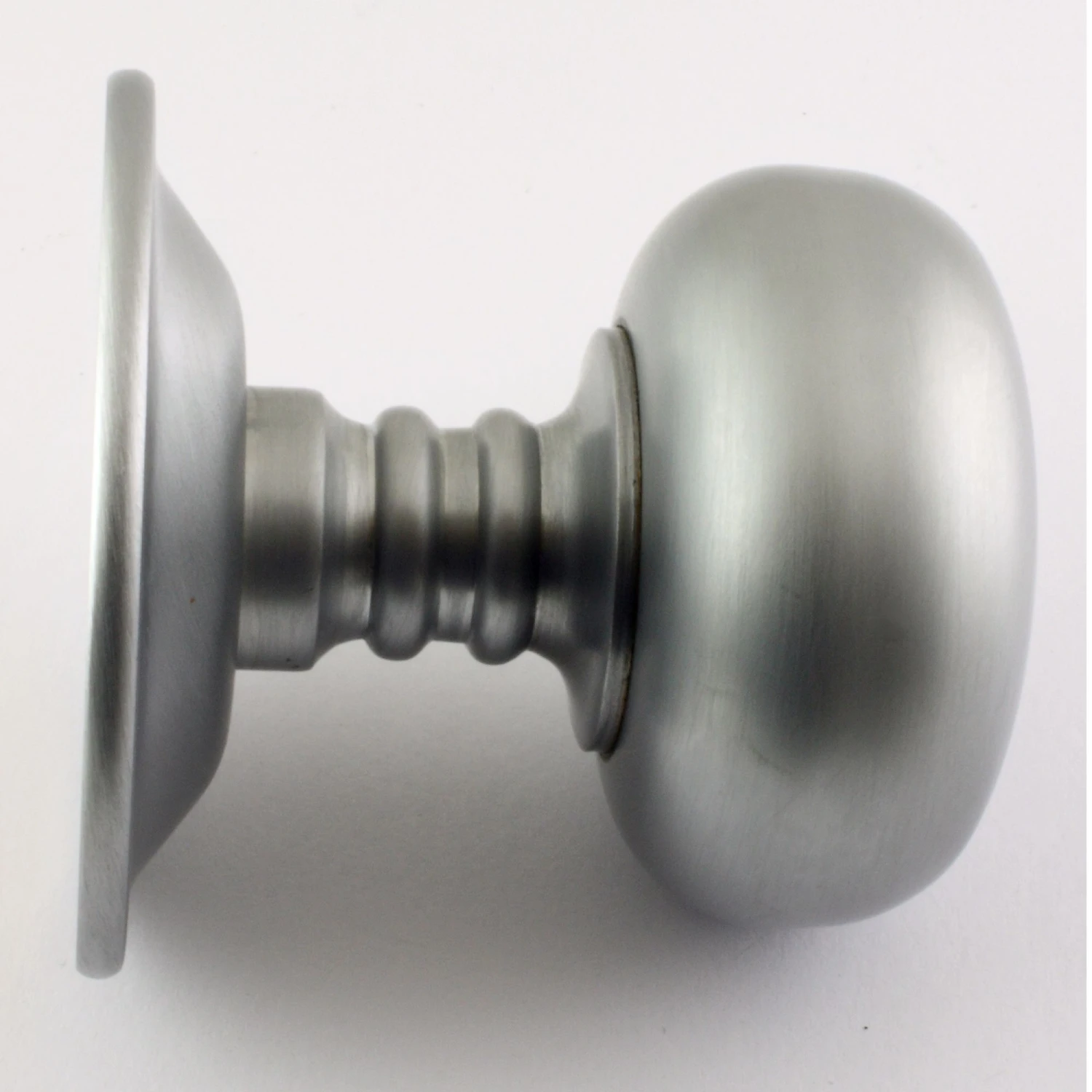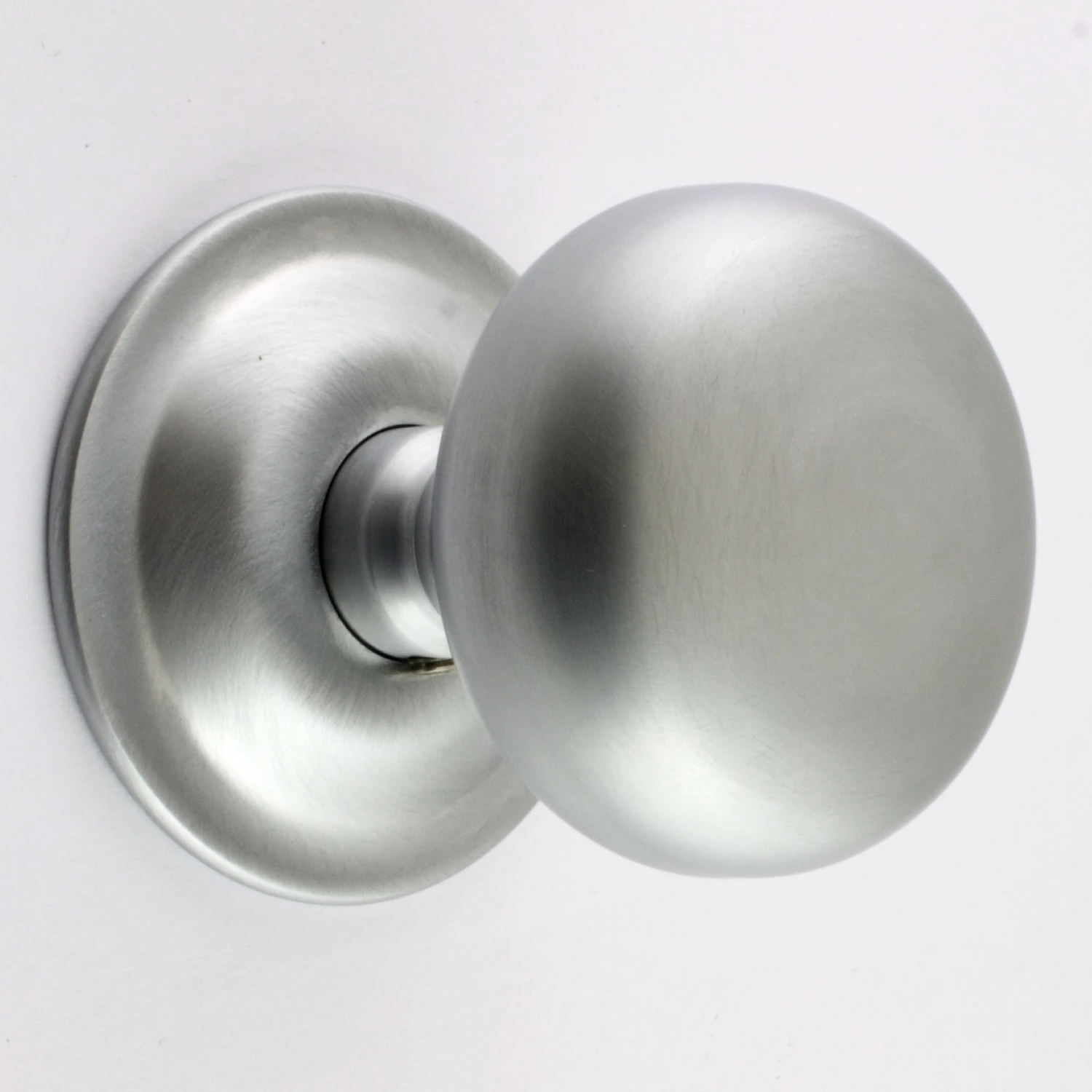 - Satin chrome finish, concealed fixing mushroom shape mortice door knob set.