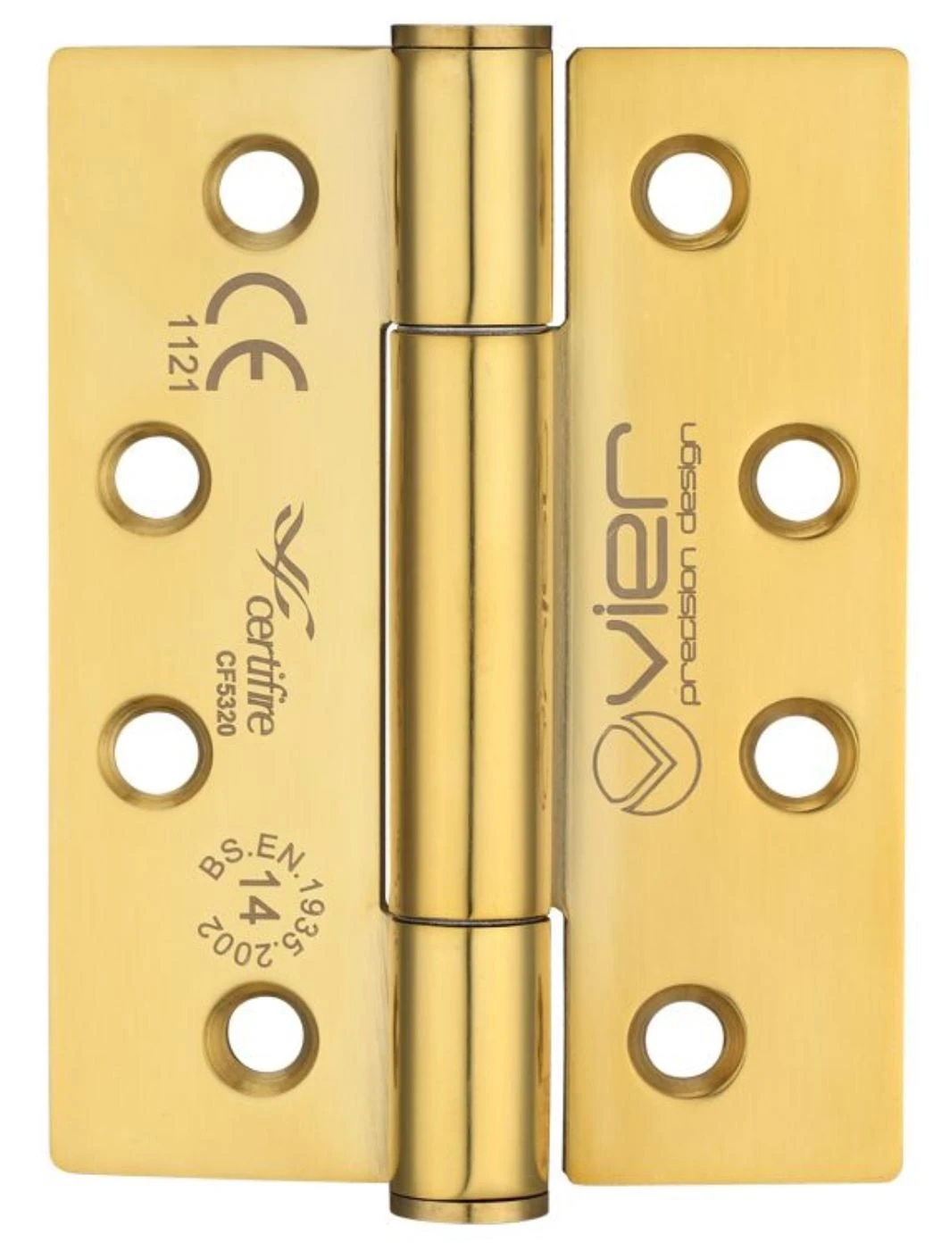 - Grade 14 concealed polymer bearing self-lubricating PVD brass finish hinges.
