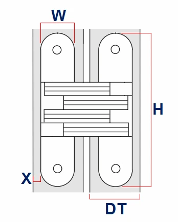 | Item Code | Height (H) | Leaf Width (W) | To Suit Door Thickness (DT) |