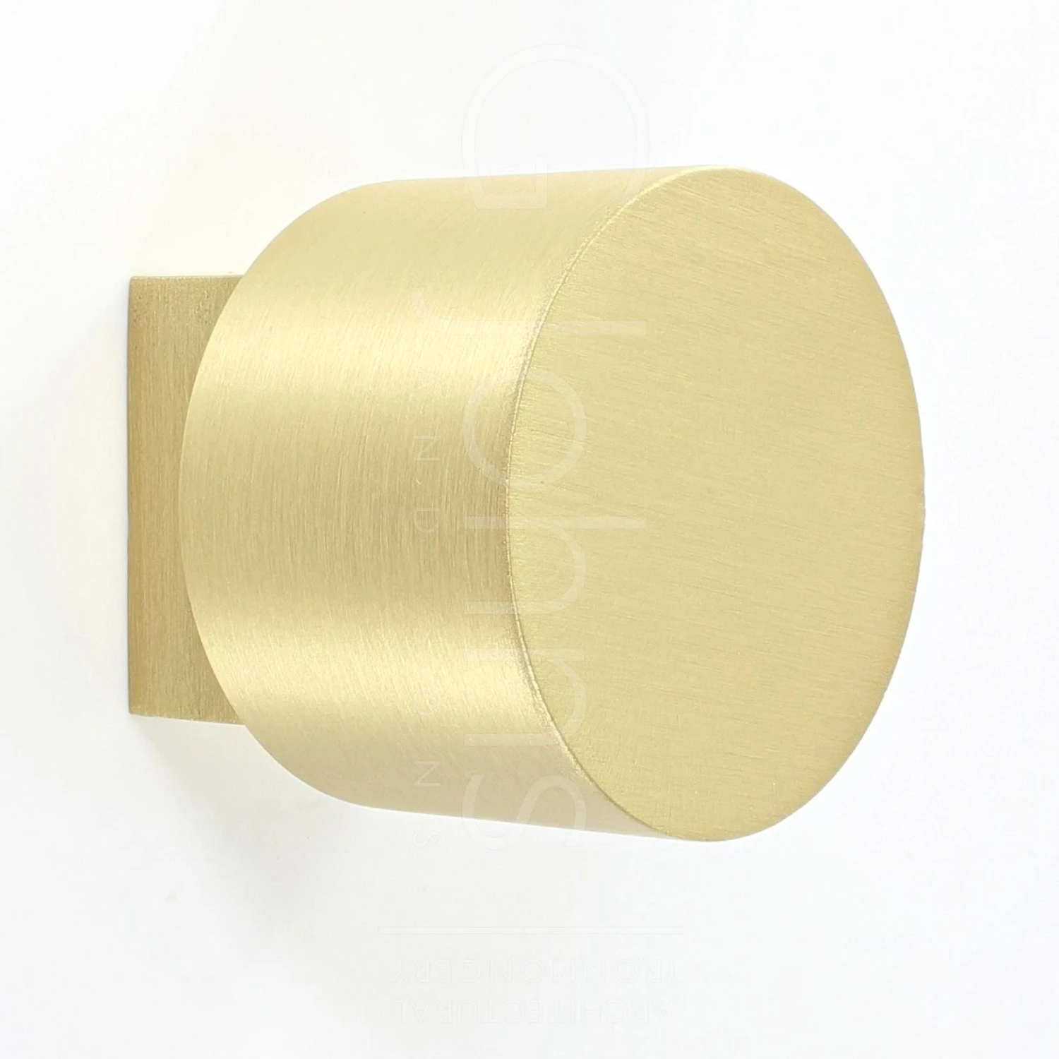 - Heavy quality, cylinder design cupboard door knobs with a squared base and an satin brass finish