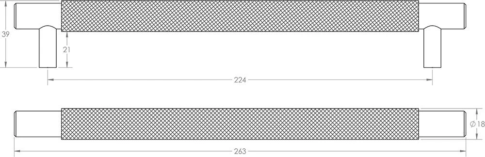 - Diamond knurled grip T-Bar cabinet pull handle