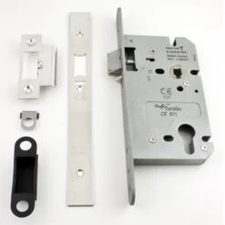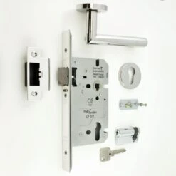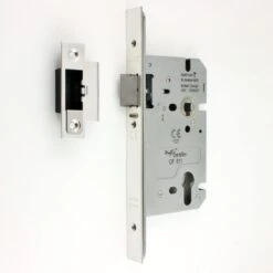 - 1x 40677.1 – DIN style euro profile anti-thrust mortice night latch – polished stainless steel finish.