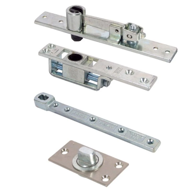 - Set includes bottom pivot, top centre and double action bottom door strap