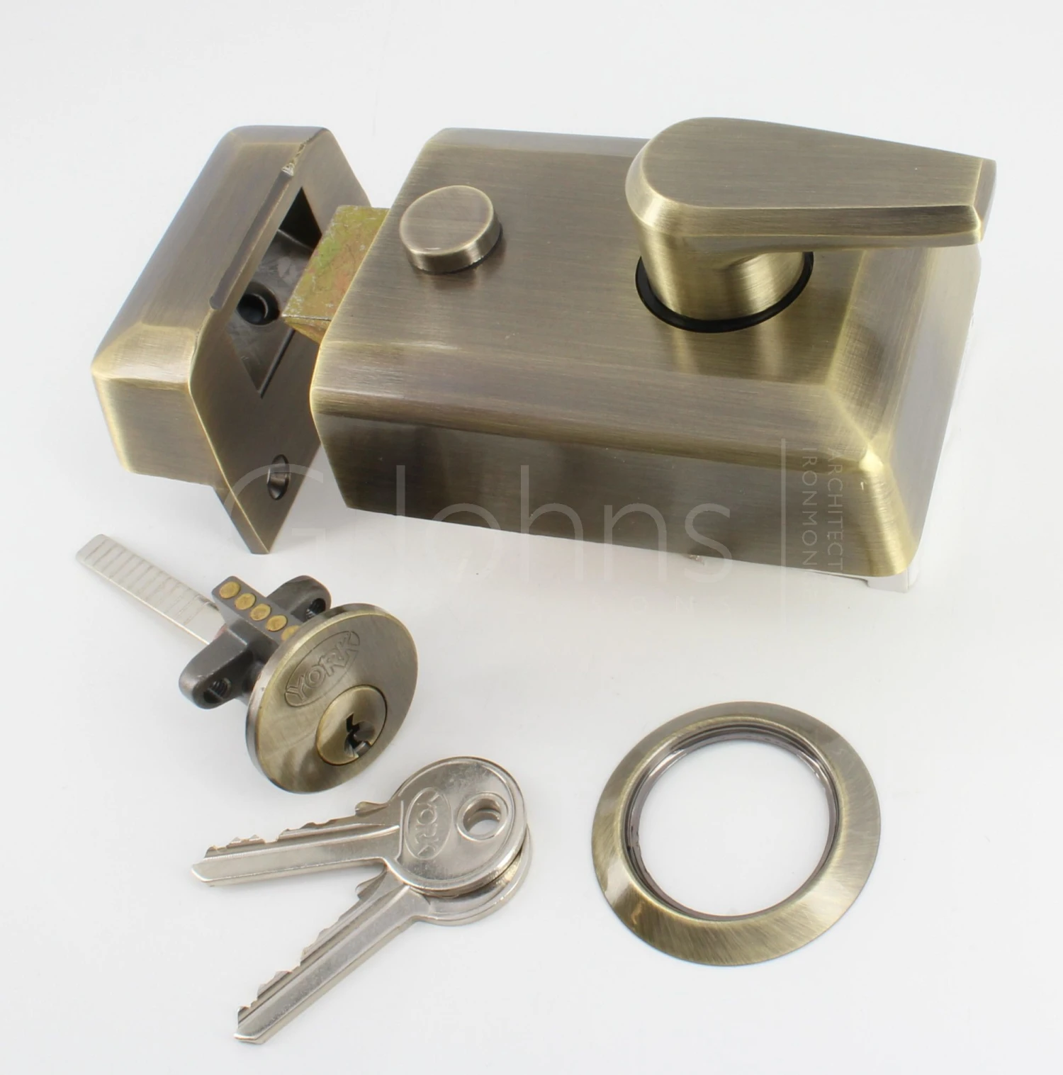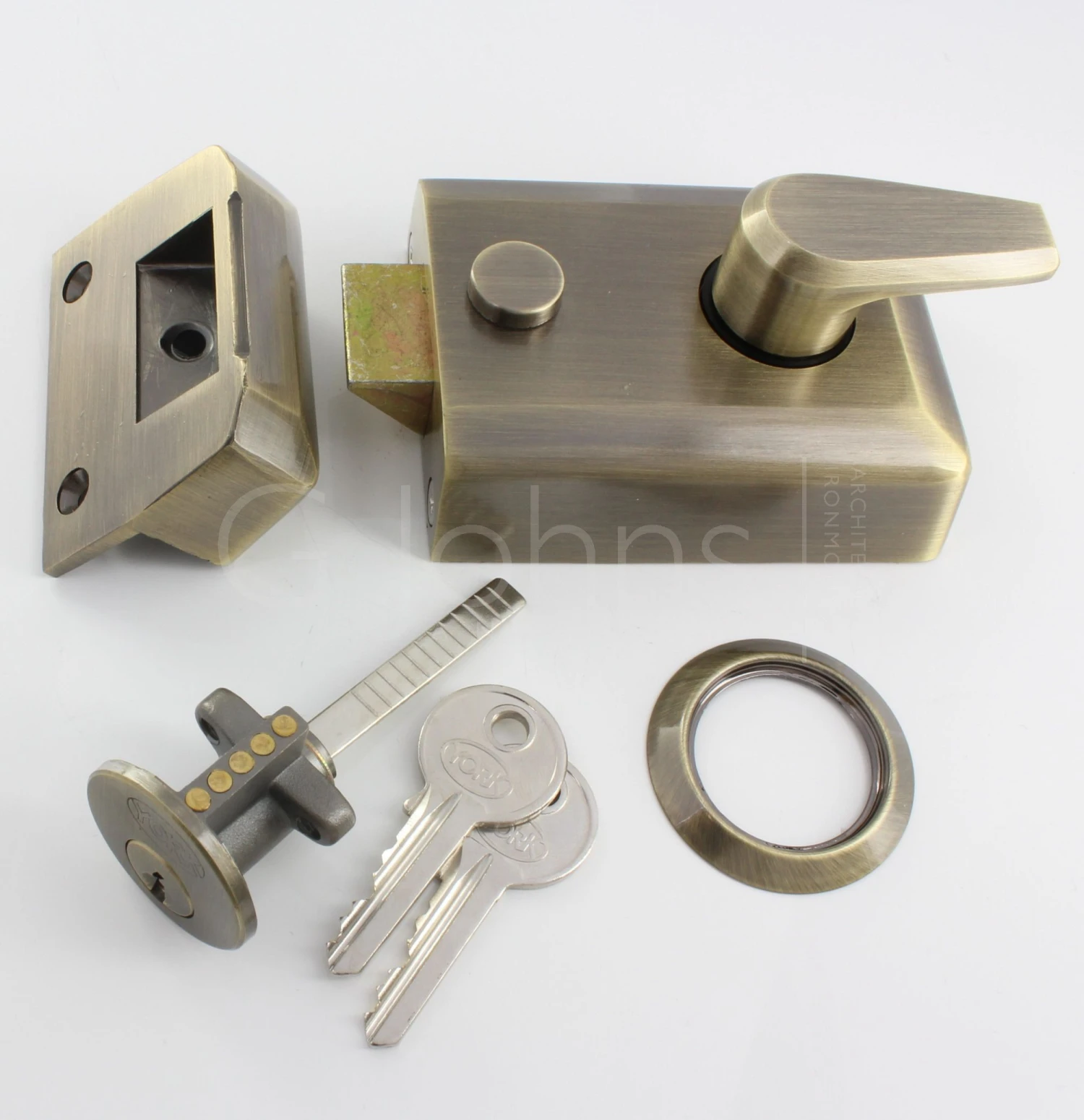- Night latch can be dead-locked (double locked) form the outside by a full turn of the key