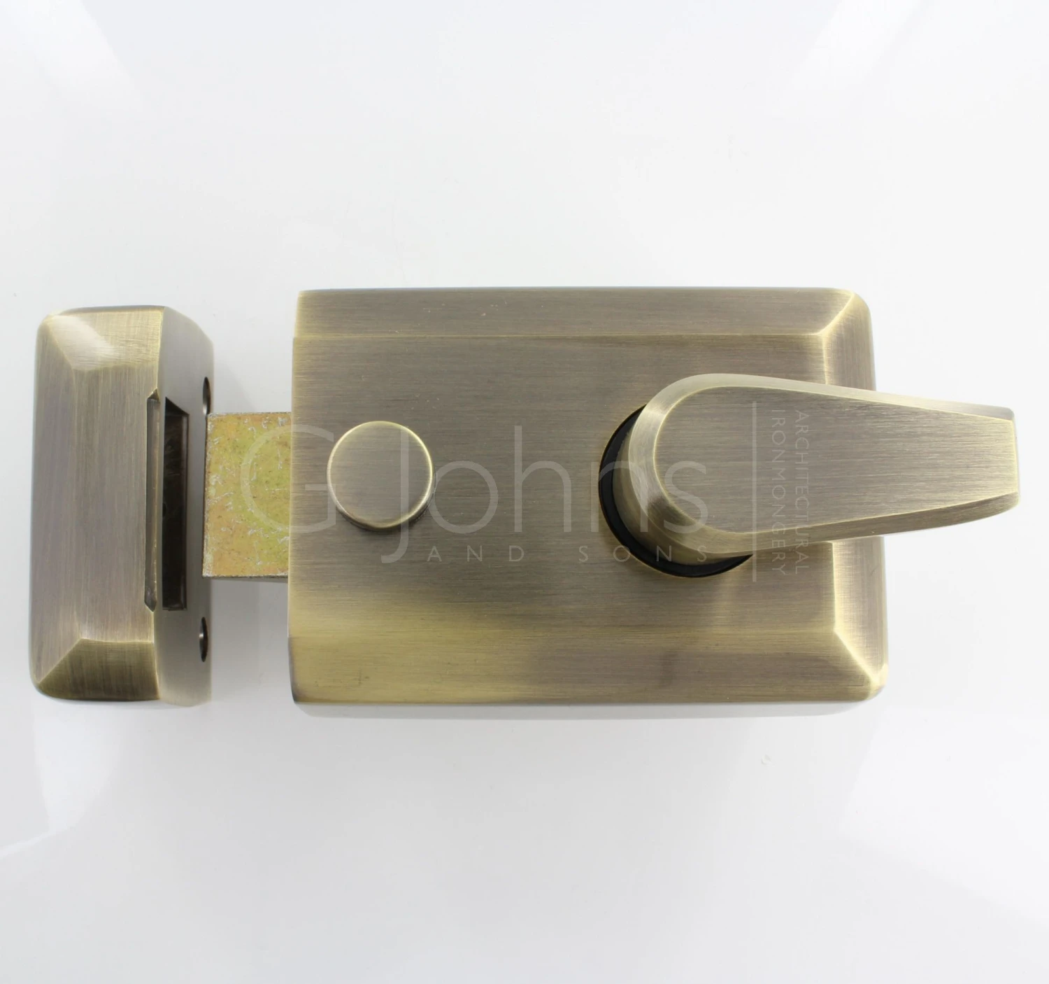 - Double locking surface mounted night latch – also known as “Yale lock”