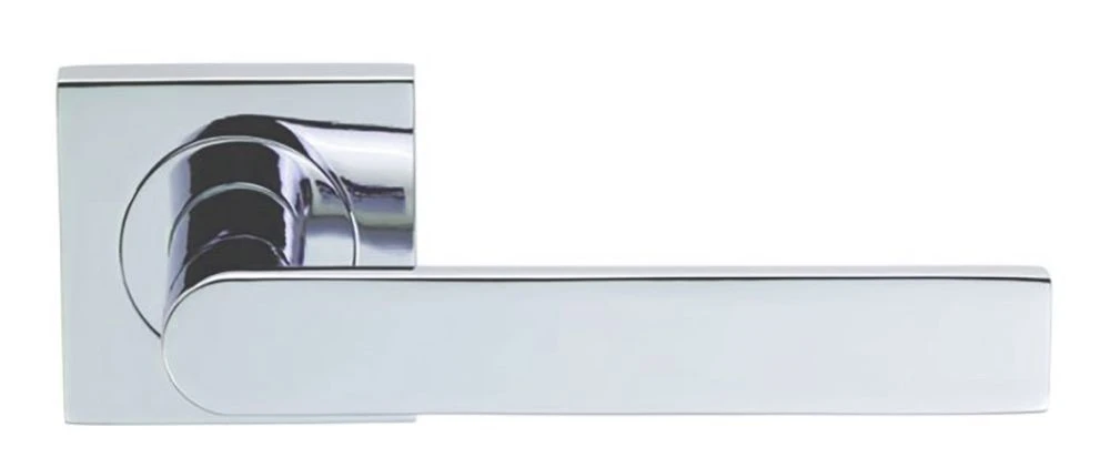 - Edge design lever on square shape rose, aย modern design polished chrome finish door handle with a flat front and rounded back.
