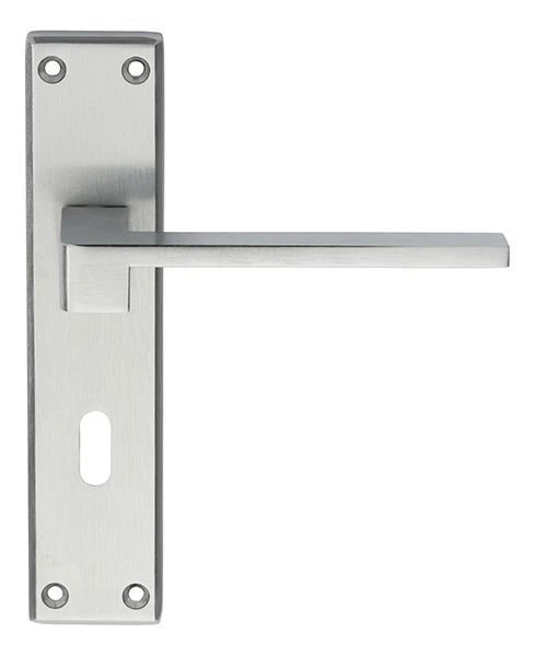 - This satin chrome lever suite is a contemporary design brushed finish door handle with a flat bar rectangular shape lever fitted to a rectangular design backplate.