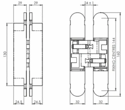 - 160mm x 32mm fire rated* adjustable concealed door hinge