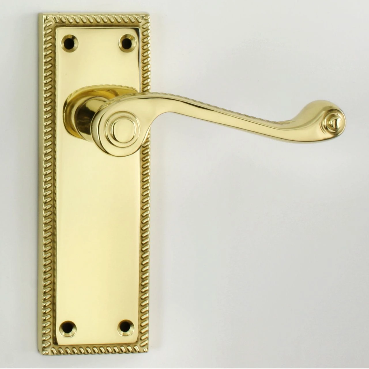 - The Georgian door handle suite from Carlisle Brass is a traditional style handle with the Georgian rope pattern decorating the edges of the backplate and the top of the lever.