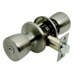 - Sold in pairs (two door knobs) and supplied with adjustable tubular latch.