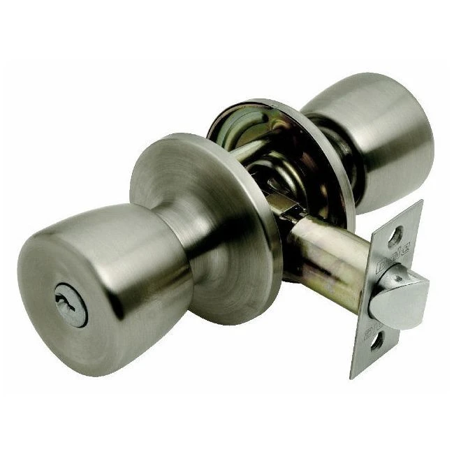 - Guardian Entrance Door Knobset – A set of door knobs with integrated key lock positioned in the centre of the outside handle. Inserting the key into the middle of the knob allows you to lock and unlock the door. From the inside a simple thumturn is located in the middle of the handle, twisting this knob also allows the door to be locked and unlocked.