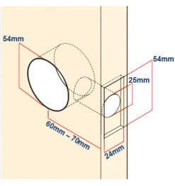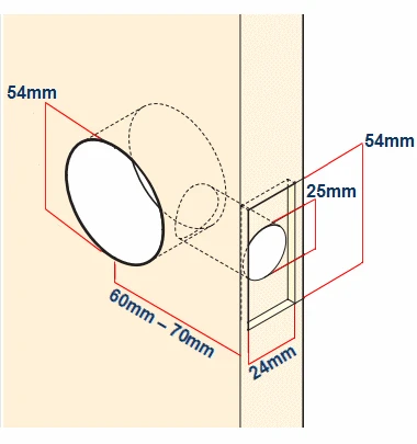 - Hole Diameter Required (Drilled Into Face Of Door) – 54mm Diameter
