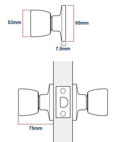 - Please note to fit this range of door knobs a large 54mm diameter hole must be drilled into the face of the door.